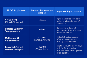 - Short, Direct Answer: AR/VR requires ultra-low latency to keep the Motion-to-Photon delay below the human threshold of 20ms, which is necessary to prevent motion sickness and maintain the crucial sense of presence.